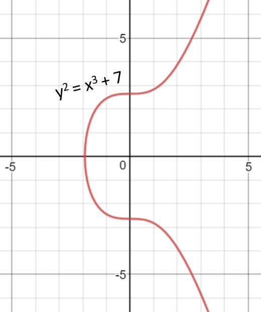 - y2 = x3 + 7 (the above elliptic curve equation, where a = 0 and b = 7)