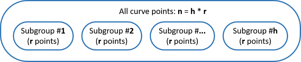 Some curves form a single cyclic group (holding all their EC points), while others form several non-overlapping cyclic subgroups (each holding a subset of the curve's EC points). In the second scenario the points on the curve are split into h cyclic subgroups (partitions), each of order r (each subgroup holds equal number of points). The order of entire group is n = h * r (the number of subgroups, multiplied by the number of points in each subgroup). The number of subgroups h holding the EC points is called cofactor.